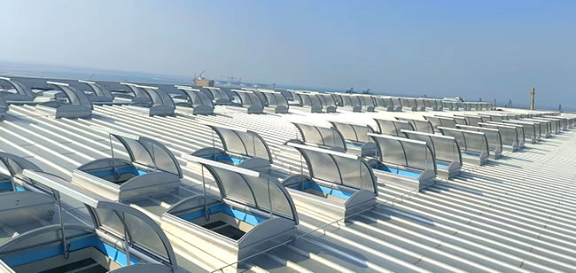 圓拱形的設(shè)計,外觀優(yōu)美、通風(fēng)排煙兼顧自然采光,開啟角度一般為30度到45度***開啟角度為90°。
