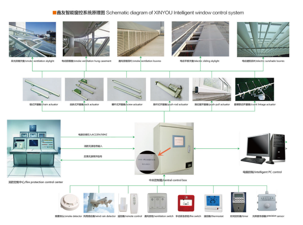 智能通風(fēng)控制系統(tǒng)由智能控制箱、墻裝開(kāi)關(guān)、遙控器、風(fēng)雨感應(yīng)器、開(kāi)窗器等組成,用戶可根據(jù)日常室內(nèi)環(huán)境的變化,通過(guò)遙控器或者開(kāi)關(guān)來(lái)對(duì)窗戶進(jìn)行開(kāi)啟和關(guān)閉的控制。